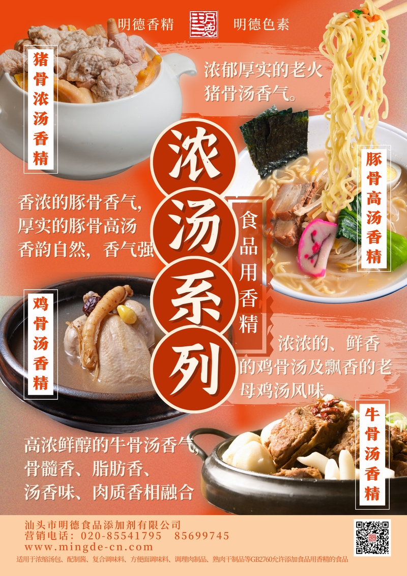 明德濃湯風(fēng)味系列香精 骨湯真韻 湯感醇厚汕頭市明德食品添加劑有限公司推出的濃湯系列香精,涵蓋豬骨濃湯、豚骨高湯、雞骨湯、牛骨湯等多種調(diào)性。產(chǎn)品真實還原老火熬煮的骨香與湯感層次,香氣厚實,留香穩(wěn)定。適用于調(diào)味料、復(fù)合調(diào)味料、濃縮湯包、方便面湯包、調(diào)理食品及肉制品等B端應(yīng)用,幫助工廠快速打造統(tǒng)一、標(biāo)準(zhǔn)化的骨湯風(fēng)味。